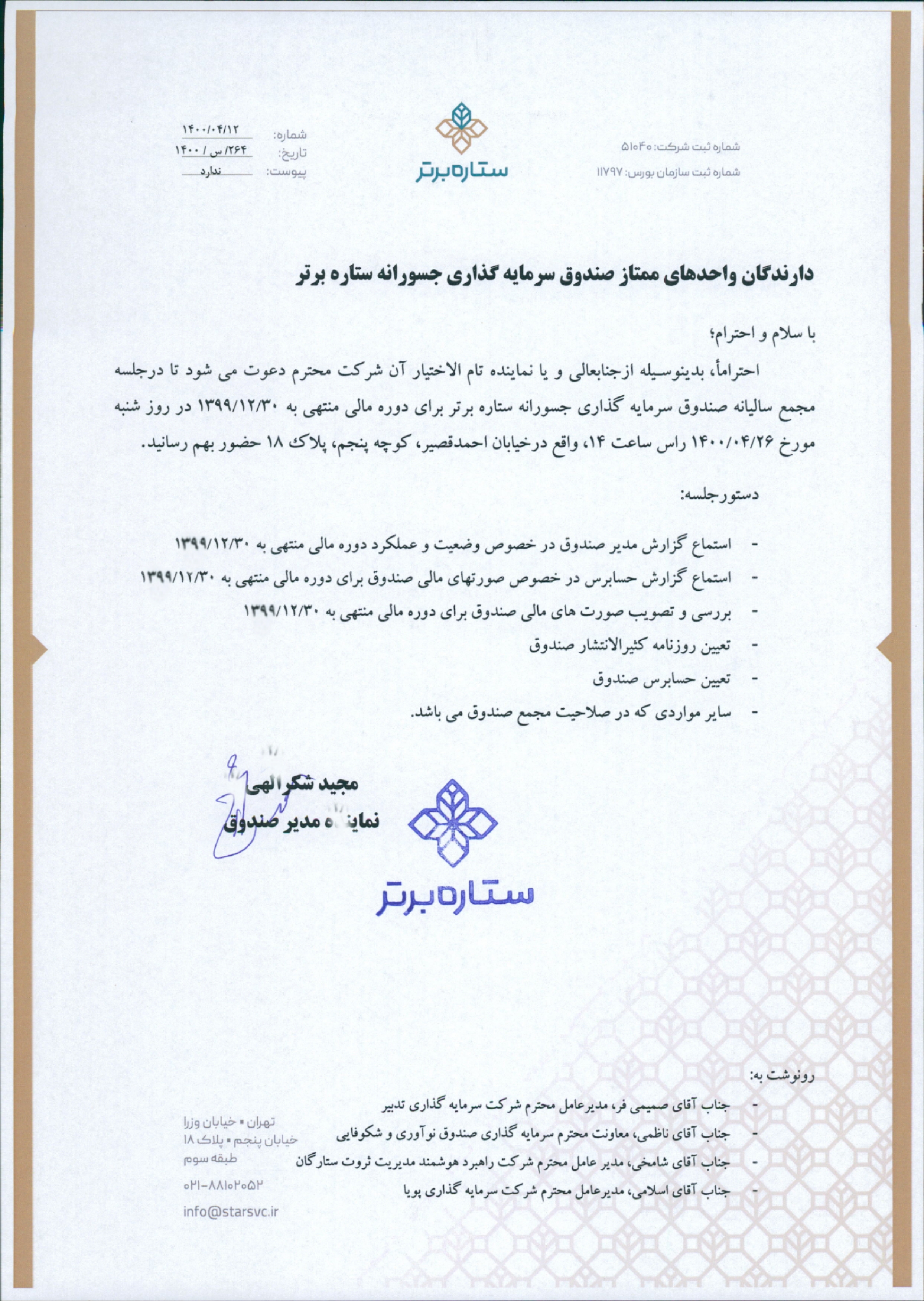 قابل توجه دارندگان واحدهای ممتاز صندوق |